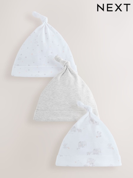 Grey Elephant Baby Tie Top Hats 3 Pack (0-12mths)