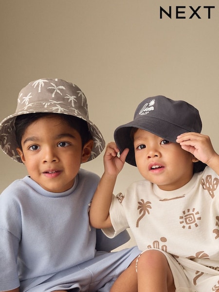Black/Tan Palm Tree Bucket Hats 2 Pack (3mths-13yrs)
