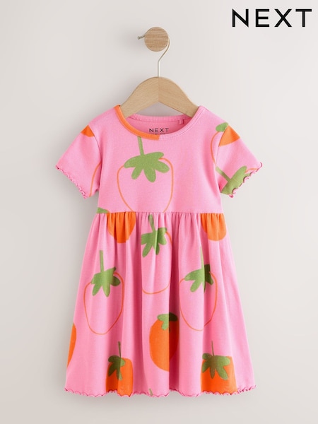 Pink Strawberry Short Sleeve Ribbed Dress (3mths-7yrs)
