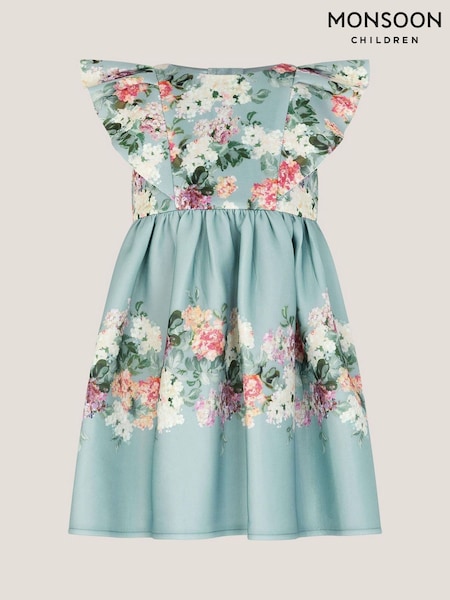 Monsoon Blue Baby Cassie Floral Print Ruffle Dress