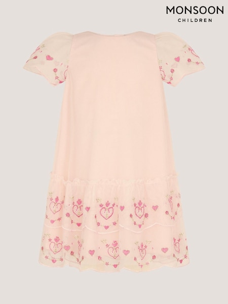 Monsoon Pink Baby Heart Embroidered Mesh Party Dress