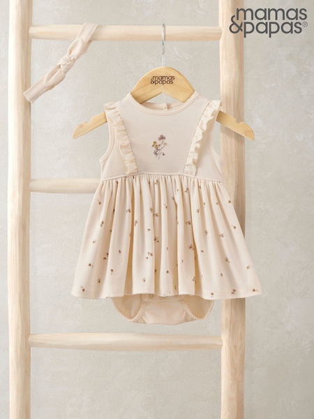 Mamas & Papas Pink Daisy Print Mock Skirt Romper With Headband Set