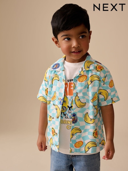 Blue/Yellow Banana All Over Short Sleeve Printed Shirt and T-Shirts Set (6mths-7yrs)