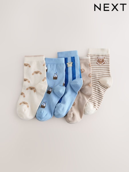 Blue/Neutral Food Character Cotton Rich Socks 5 Pack
