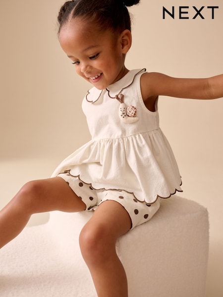 Ecru/Chocolate Brown Spot Blouse and Short Set (3mths-7yrs)