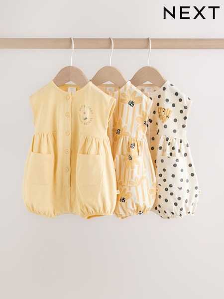 Yellow Floral Button Through 3 Pack Baby Rompers
