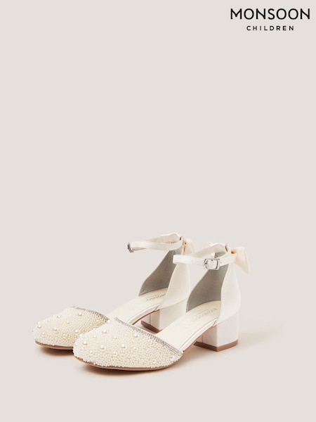 Monsoon Cream Communion Flower Embellished Closed Toe Heels
