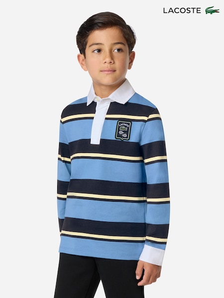 Lacoste Blue Tennis Rugby Stripe Polo Shirt