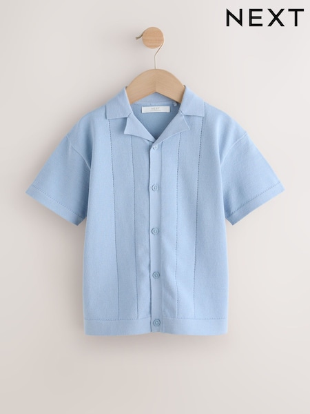 Blue Knitted Revere Collar Polo Shirt (3-16yrs)