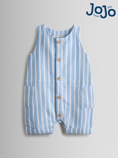 JoJo Maman Bébé Blue Button Front Stripe Romper