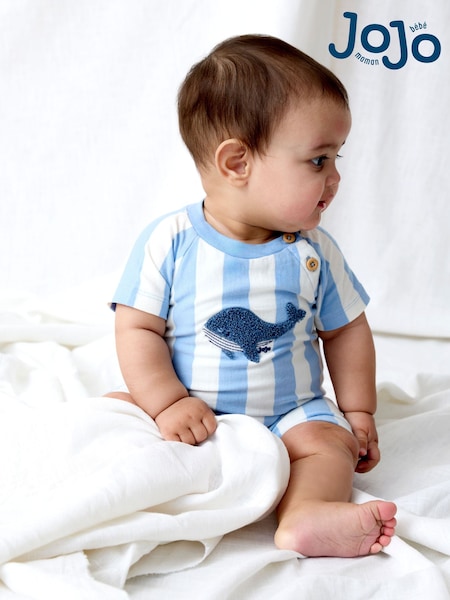 JoJo Maman Bébé Blue Whale Appliqué Romper & Hat Set