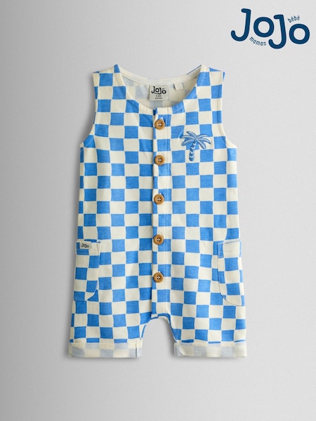 JoJo Maman Bébé Light Blue Checkerboard Button Through Romper