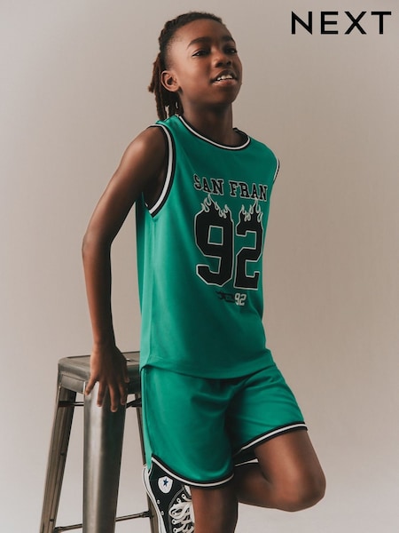 Bright Green Basketball Tank & Shorts Set (3-16yrs)