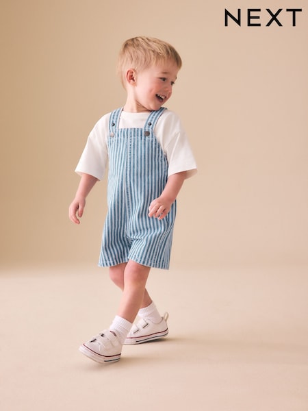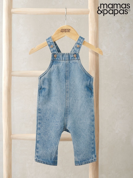 Mamas & Papas Blue Denim Cotton Dungaree 2 Piece Set