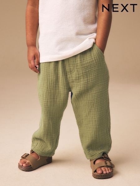 Olive Green Soft Textured Pull On Trousers (3mths-7yrs)