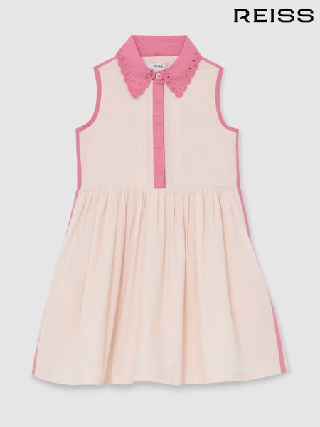 Reiss Light Pink Odela Cotton Contrast-Trim Collared Dress