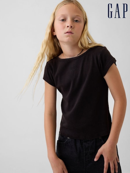 Gap Black Cap-Sleeve Fitted T-Shirt (4-13yrs)