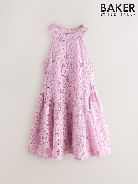 Baker by Ted Baker Dusky Pink Lace Halter Drop Waist Dress