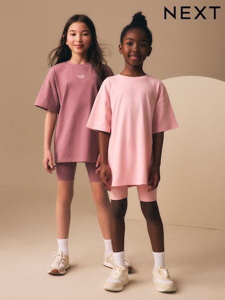 Pink/Brown Oversized T-Shirt and Cycling Shorts Set 2 Pack (3-16yrs)