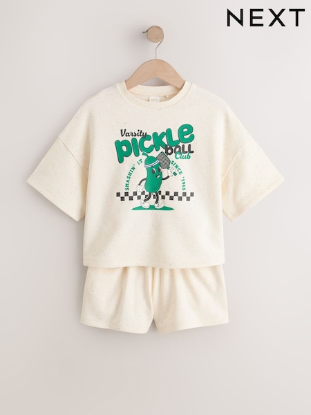 Cream Pickleball Heavyweight T-Shirt and Shorts Set (3-16yrs)