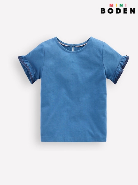 Boden Blue Ruffle Sleeve T-Shirt