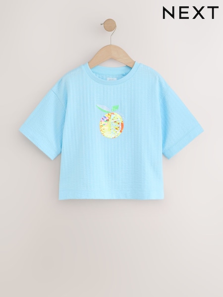 Blue Orange Sequin Textured Oversized Boxy T-Shirt (3-16yrs)