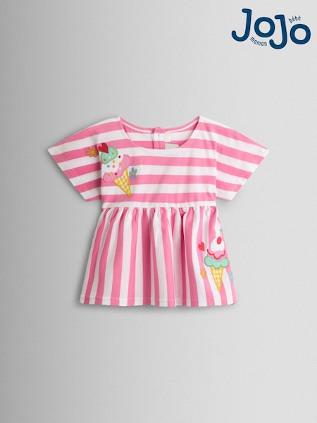 JoJo Maman Bébé Pink Ice cream Appliqué Peplum T-Shirt