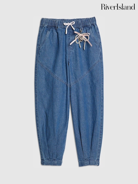 River Island Blue Denim Cargo Trousers with Keyring