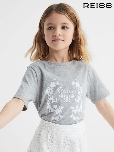 Reiss Grey Marl Bobbi 4-9 yrs Motif Crew Neck T-Shirt