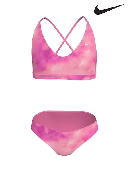 Nike Pink Tie Dye Lace Up Bikini Set