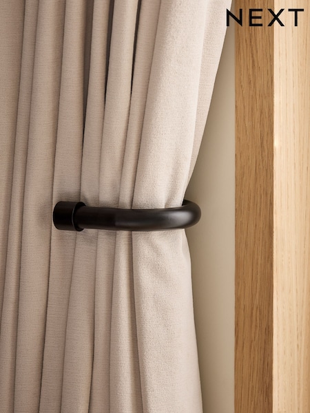 Set of 2 Black Curved Stud Curtain Holdbacks