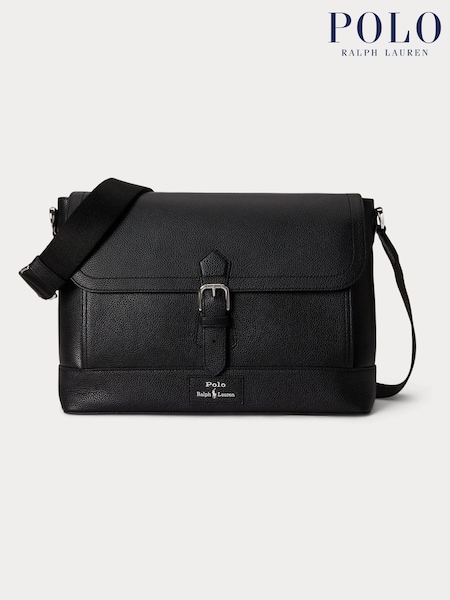 Polo Ralph Lauren Black Pebbled Leather Messenger Bag