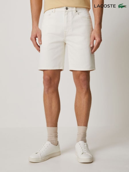 Lacoste White Straight Leg Cotton Denim Bermuda Shorts