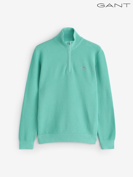 GANT Light Green Micro Waffle Texture Cotton Quarter Zip Knit Jumper