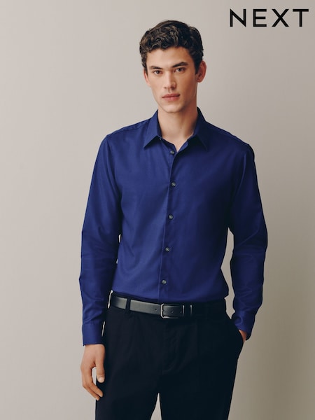 Sapphire Blue Slim Fit Cotton Rich Textured Easy Care Smart Shirt