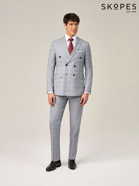 Skopes Grey Double Breasted Fit Anello Check Suit Jacket