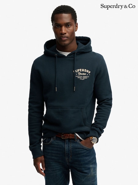 Superdry Blue 100% Cotton Vintage Athletic Zip Hoodie