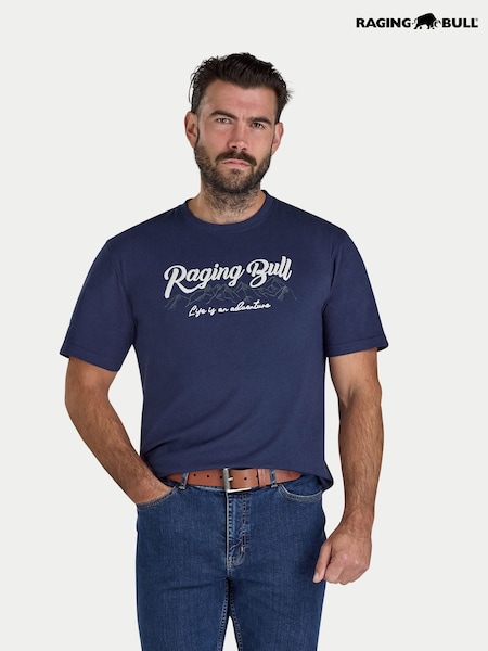 Raging Bull Embroidered Mountains Blue T-Shirt