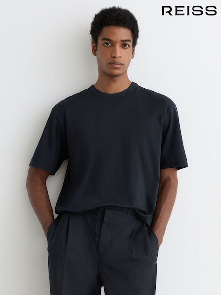 Reiss Navy Blaikie Airwater-Cotton Relaxed-Fit T-Shirt