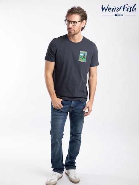 Weird Fish Blue Keaton Premium Relaxed Supersoft Pocket 100% Cotton T-Shirt