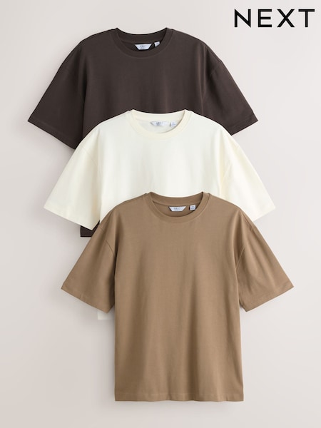 Neutral Brown Relaxed Fit Essential Crew Neck Cotton T-Shirt