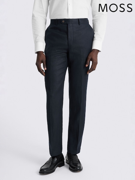 MOSS Navy Slim Fit Twill Linen Suit Trousers