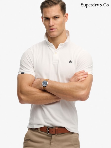 Superdry White 100% Cotton Slub Long Sleeve Jersey Grandad Top