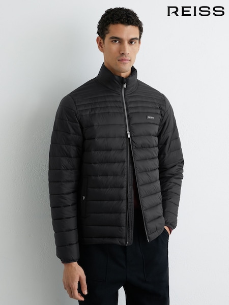 Reiss Black Acer Quilted Zip-Through Jacket