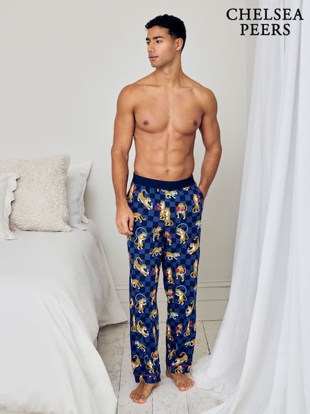Chelsea Peers Blue Cotton Boxing Leopards Print Long Pyjama Bottoms