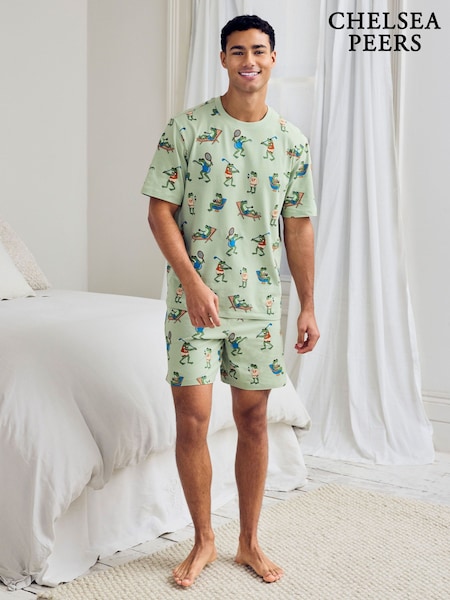 Chelsea Peers Green Weekend Club Print Short Pyjamas Set