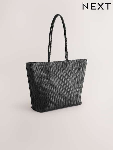 Black Leather Weave Shoulder Bag