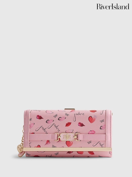 River Island Pink Jadore Heart Cliptop Purse