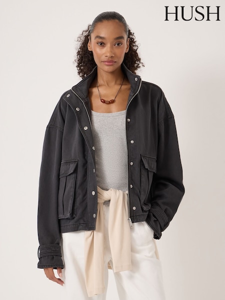 Hush Black Laurie Zip-Up 100% Cotton Utility Jacket