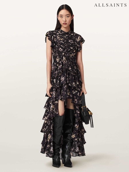 AllSaints Black Bryony Black V-Neck Midi Dress